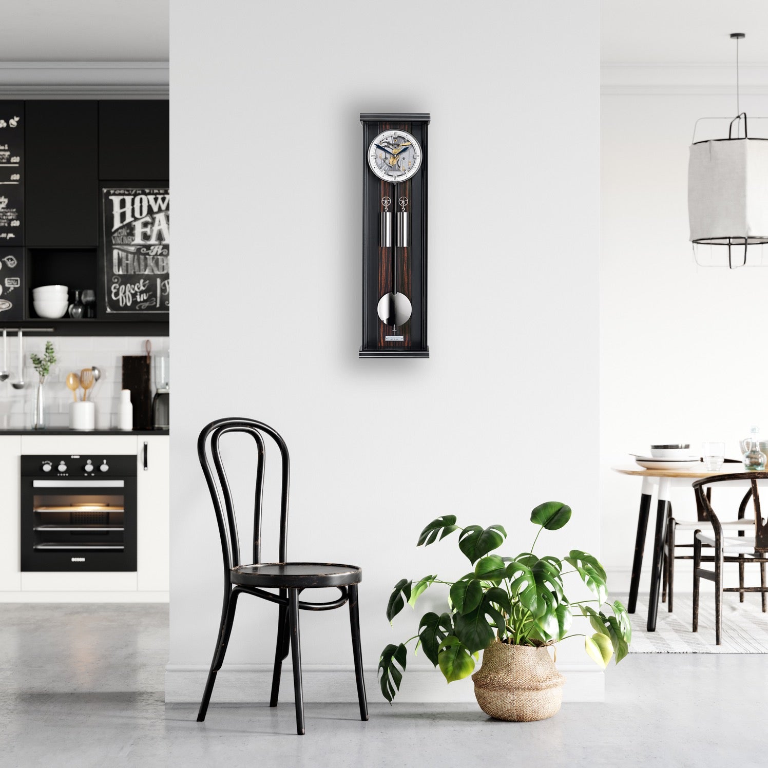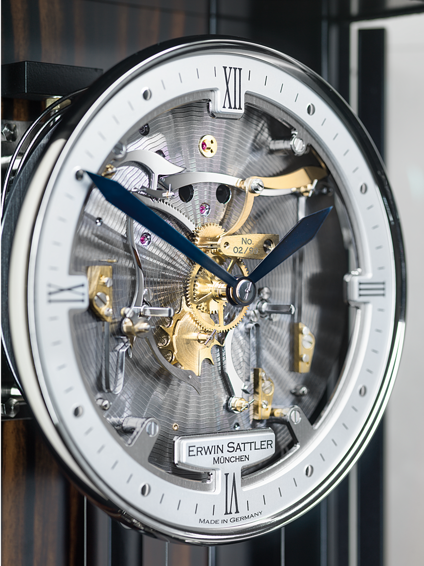 The skeletonised dial, which has been worked to a high-quality finish, completes the modern regulator. Its characteristic and timeless appearance blends perfectly into any surroundings – whether classical décor or an elegant and contemporary space.