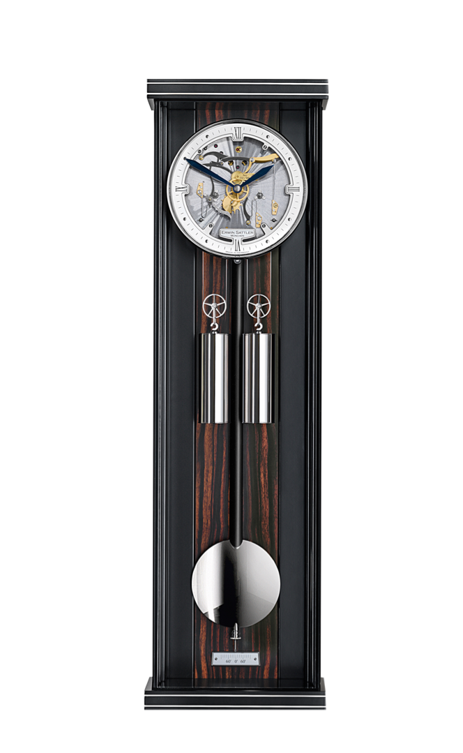 It goes without saying that the chime can also be completely silenced if preferred. Each and every clock from Erwin Sattler is individually and lovingly crafted in the manufacture in Gräfelfing near Munich. Thanks to the high level of quality and durability that characterises the timepieces, they make reliable and attractive lifestyle accessories. Inside the Aperia S70, fifteen jewel bearings and four ball bearings keep it ticking. The clock owes its unique allure to its new look, which is dominated by the simple yet elegant case finished in black varnish with delicate metal inlays on the base and rim, as well as the U-shaped glass glued on a mitre.