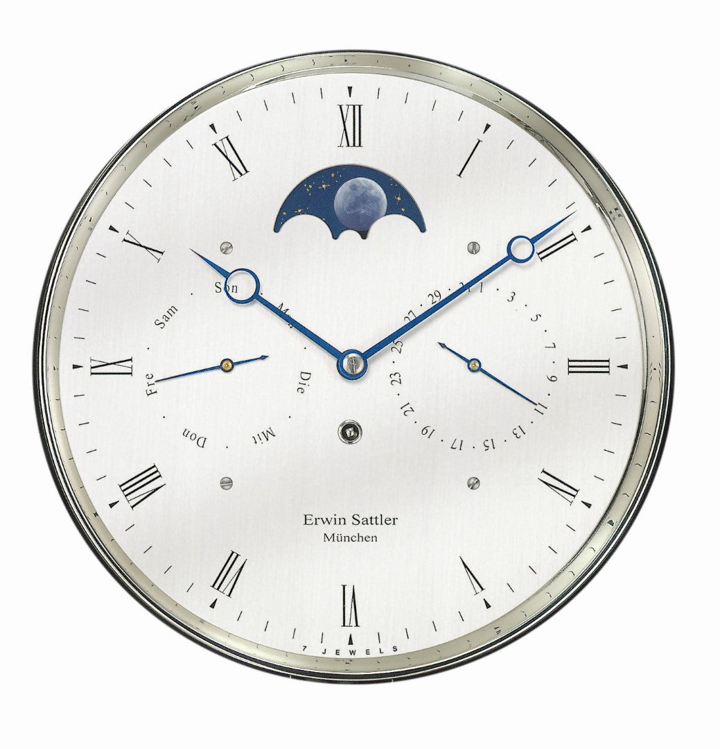 Hand-blued steel hands also indicate the day and date on a fine dial. Of particular interest is the beautiful hand-painted moon phase, which shows the changing illumination of the Moon – in a sense paying homage to Earth’s mystical companion and the way in which its effect on life has captivated people of all eras, and still does today. On the Classica K 100, this moon disc is a wonderful complement to the subsidiary dials for the calendar and gives the clock an extra level of visual interest.