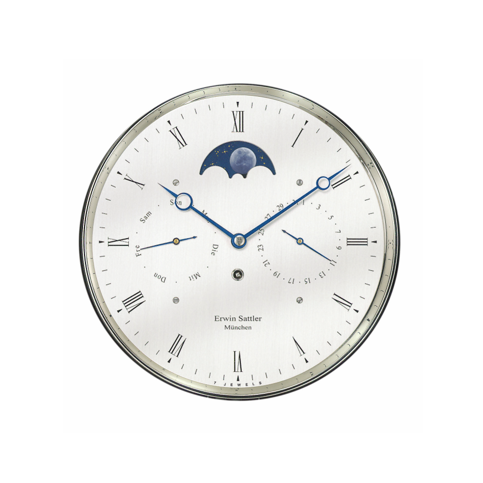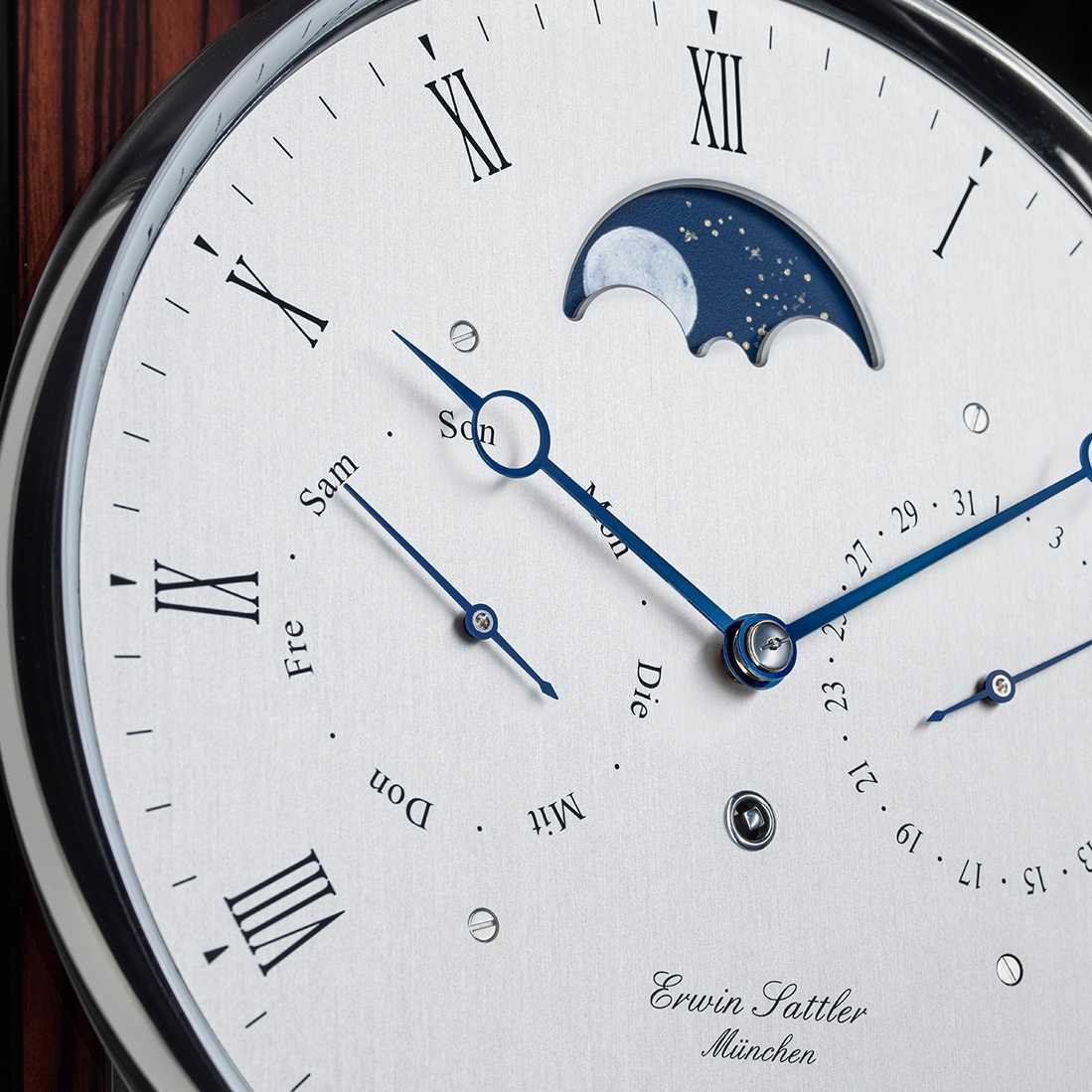 The outstanding quality of the clocks produced by Erwin Sattler is not achieved simply as a result of using state-of-the-art technical solutions – it is also a result of above average craftsmanship skills and sensitivity for materials and processes, not to mention extensive clock-making experience. A total of 14 clockmakers at the manufacture are involved in creating the true classic that is the Classica K100 M. In addition to displaying the time with a built-in calendar mechanism, this clock offers a full month’s worth of power reserve.