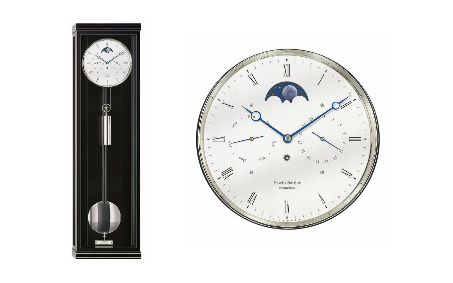 The Troja Sonata M, a precision pendulum clock with half-hour impact mechanism and moon phase display. As an imposing grandfather clock, it can also hide the most secret treasures … In addition, the video also shows the Secunda Sonata, the counterpart as a classic precision pendulum clock for the wall.