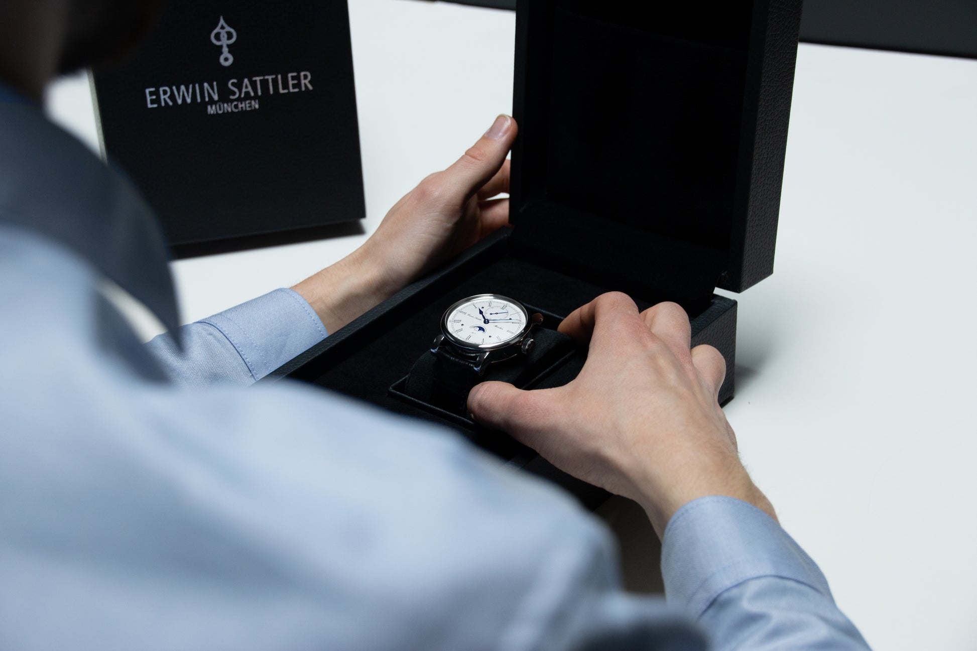 | Strap | Hand-sewn remborded leather strap, stainless steel folding clasp with Sattler engravement |