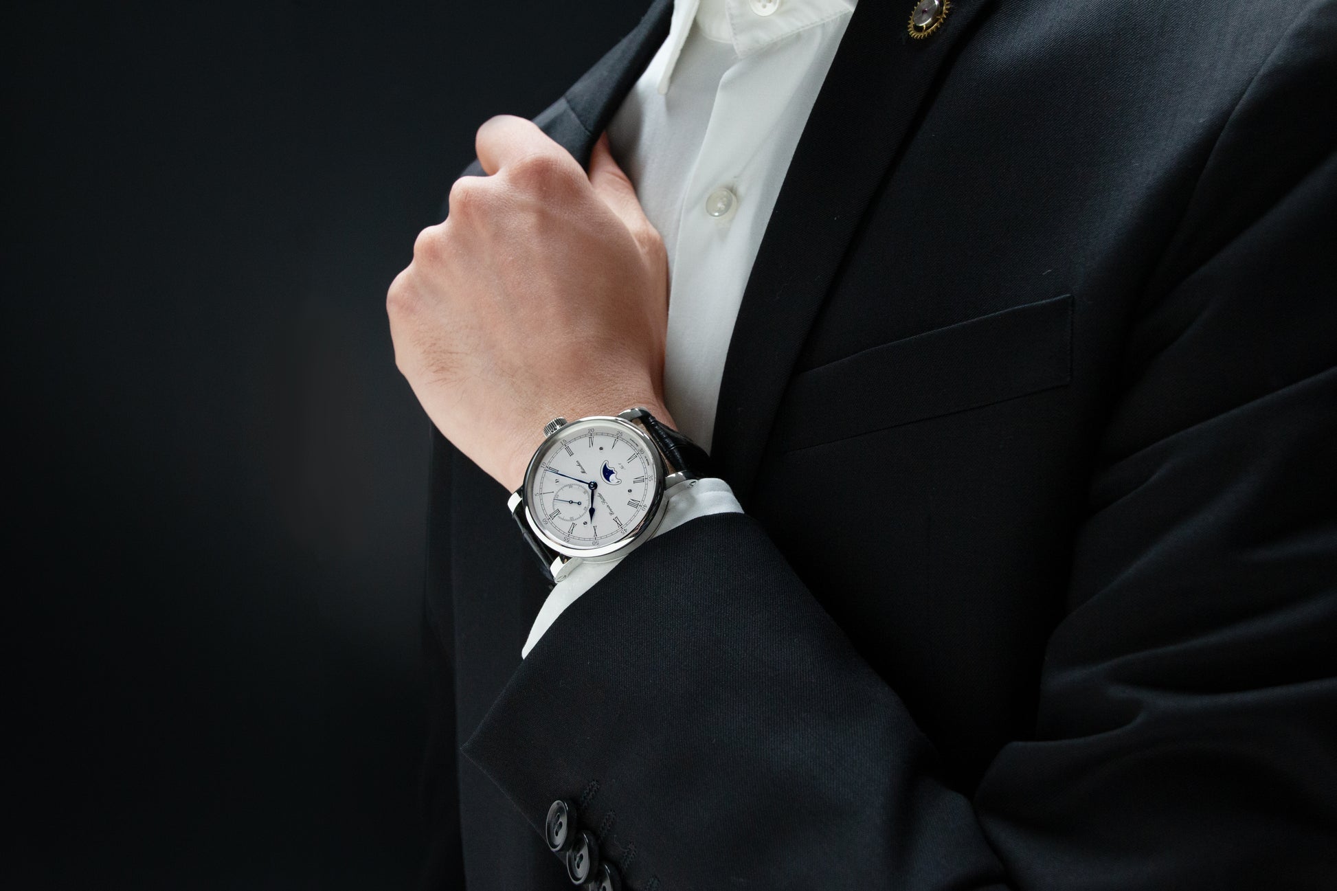 It is elegant, the new Classica Lunaris by Erwin Sattler, with automatic winding and a jumping “small second”. Perfectly polished surfaces not only reflect the light, but also form a beautiful contrast to the finely matt silver dial.