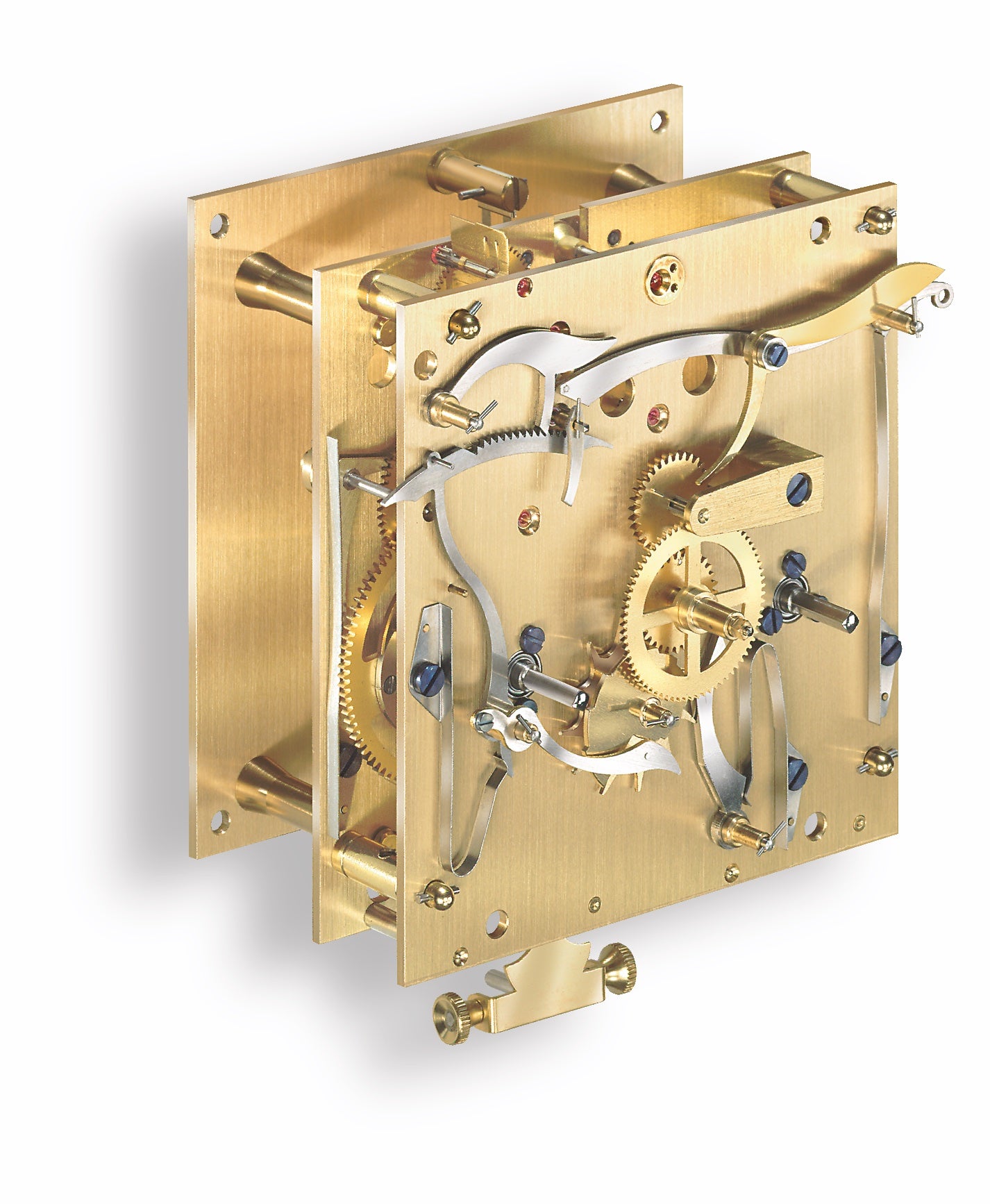 This 70-centimetre-tall clock signals every half-hour with wonderfully tuneful chimes, but the owner need not await the half-hour. Thanks to the repetition feature, the strike train can be manually triggered up to the fiftieth minute, thus allowing the previous hour to be repeated. The chime can also be completely silenced if preferred.