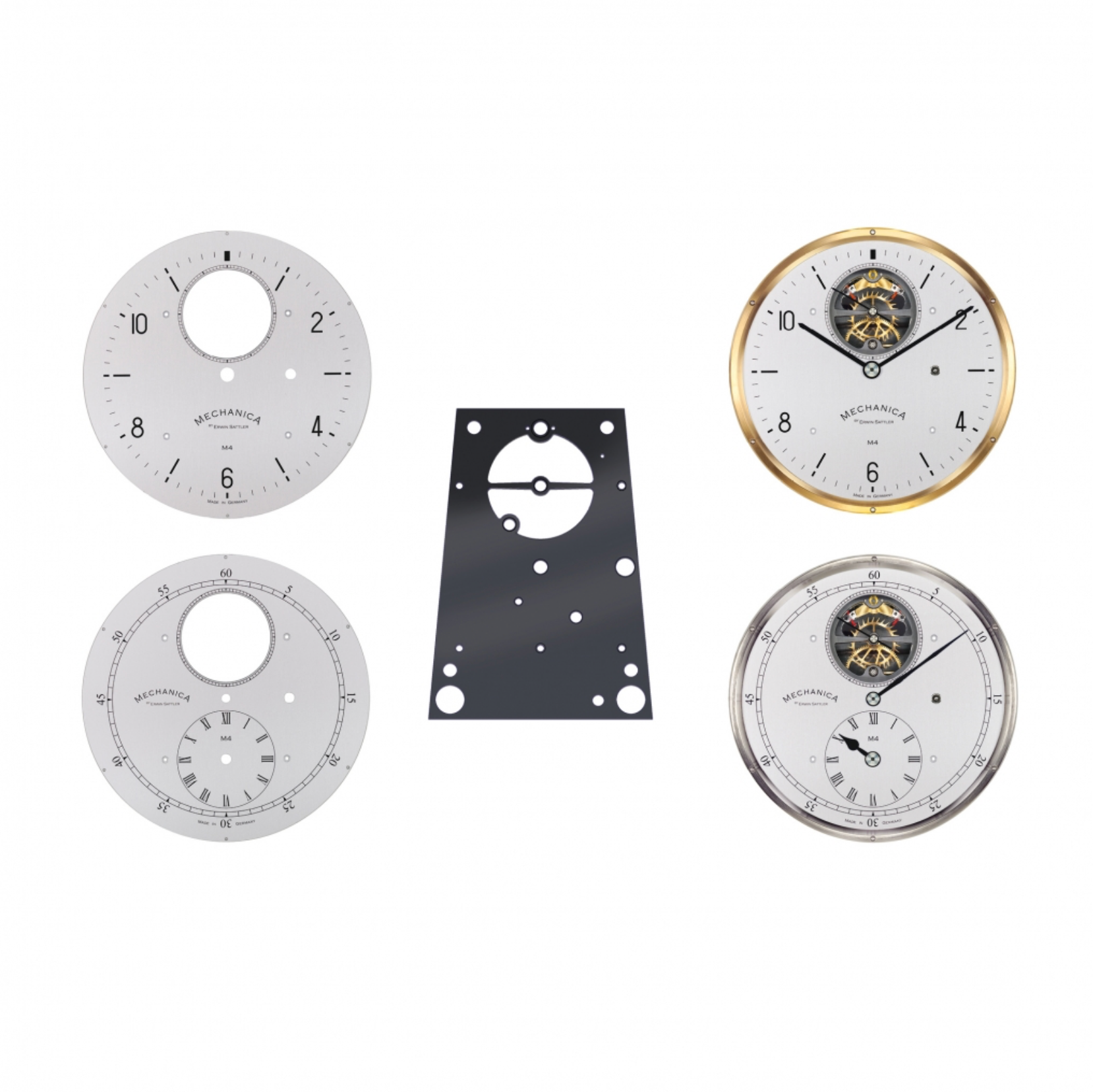 The cutaway in the seconds subdial in conjunction with a milling in the top plate of the movement makes it possible to see the gold-plated gear wheels and the Graham escapement. The modified set contains the dial with cutaway and serial number as well as the top plate with its special milling.