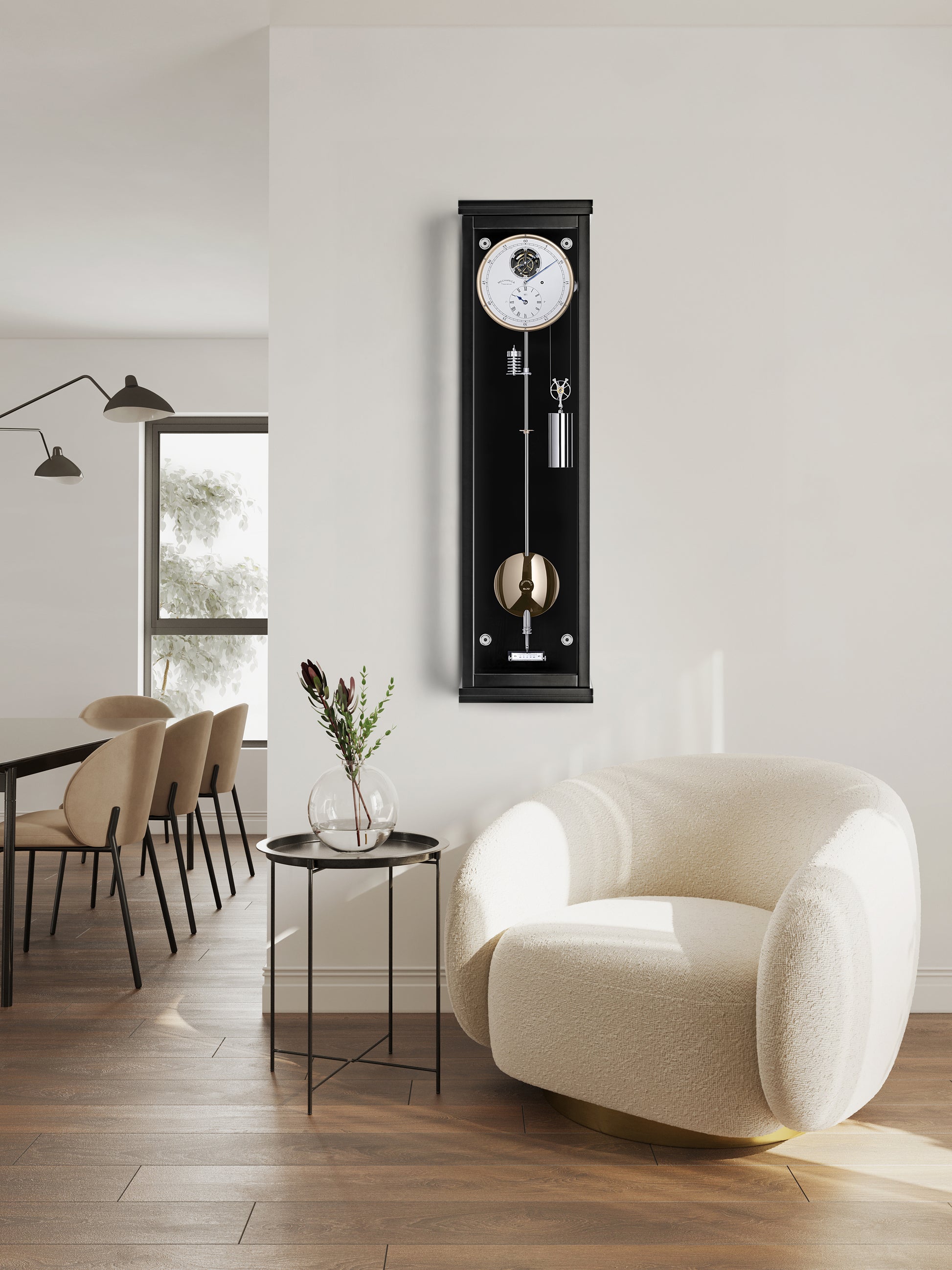 The Troja Sonata M, a precision pendulum clock with half-hour impact mechanism and moon phase display. As an imposing grandfather clock, it can also hide the most secret treasures … In addition, the video also shows the Secunda Sonata, the counterpart as a classic precision pendulum clock for the wall.