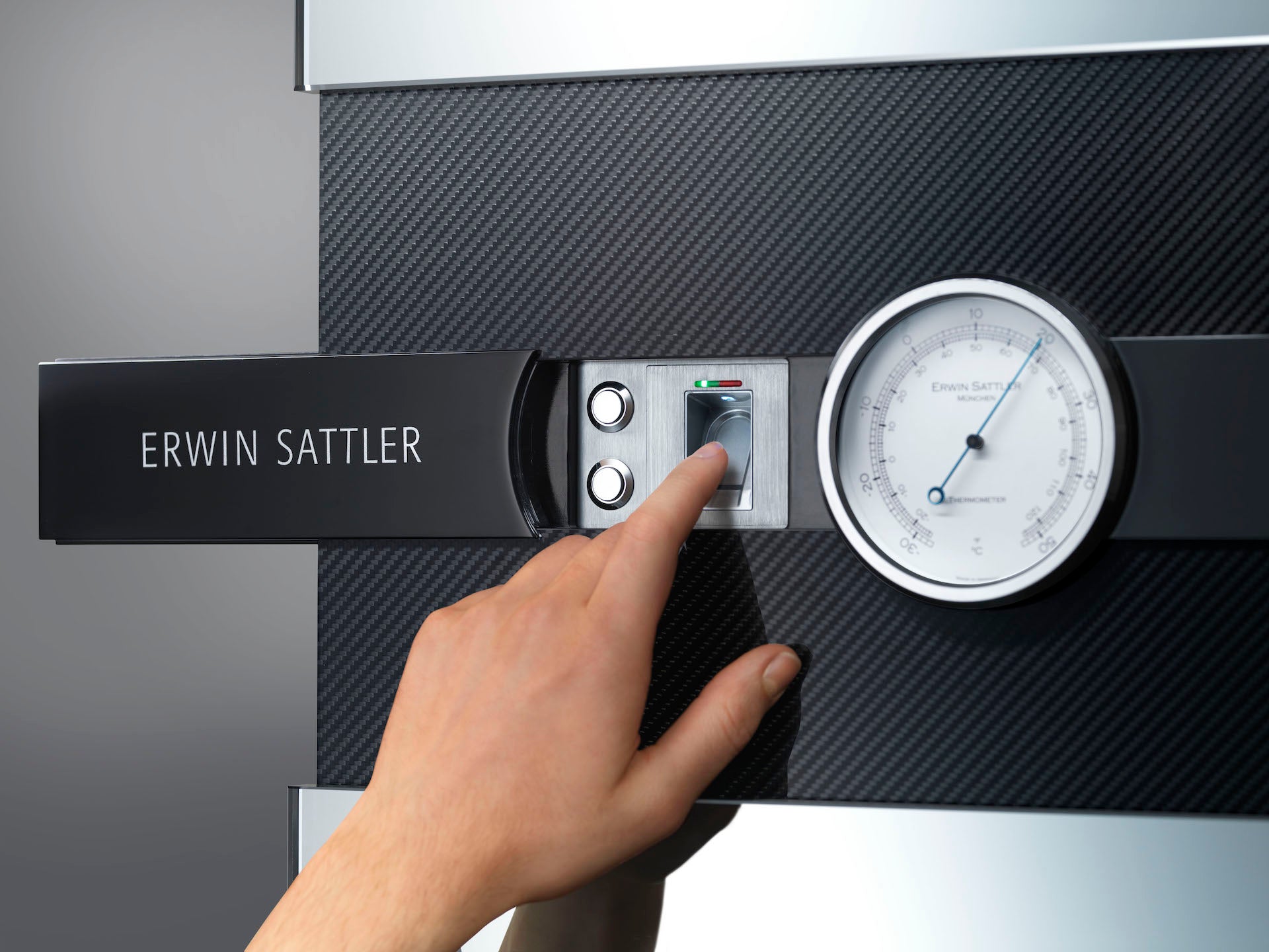 | Glass panes | Four layer safety glass (the glass panels open electrically after identification by smart interface or via fingerprint reader or with the included key, you can find the lock behind the sliding panel at the right side) |