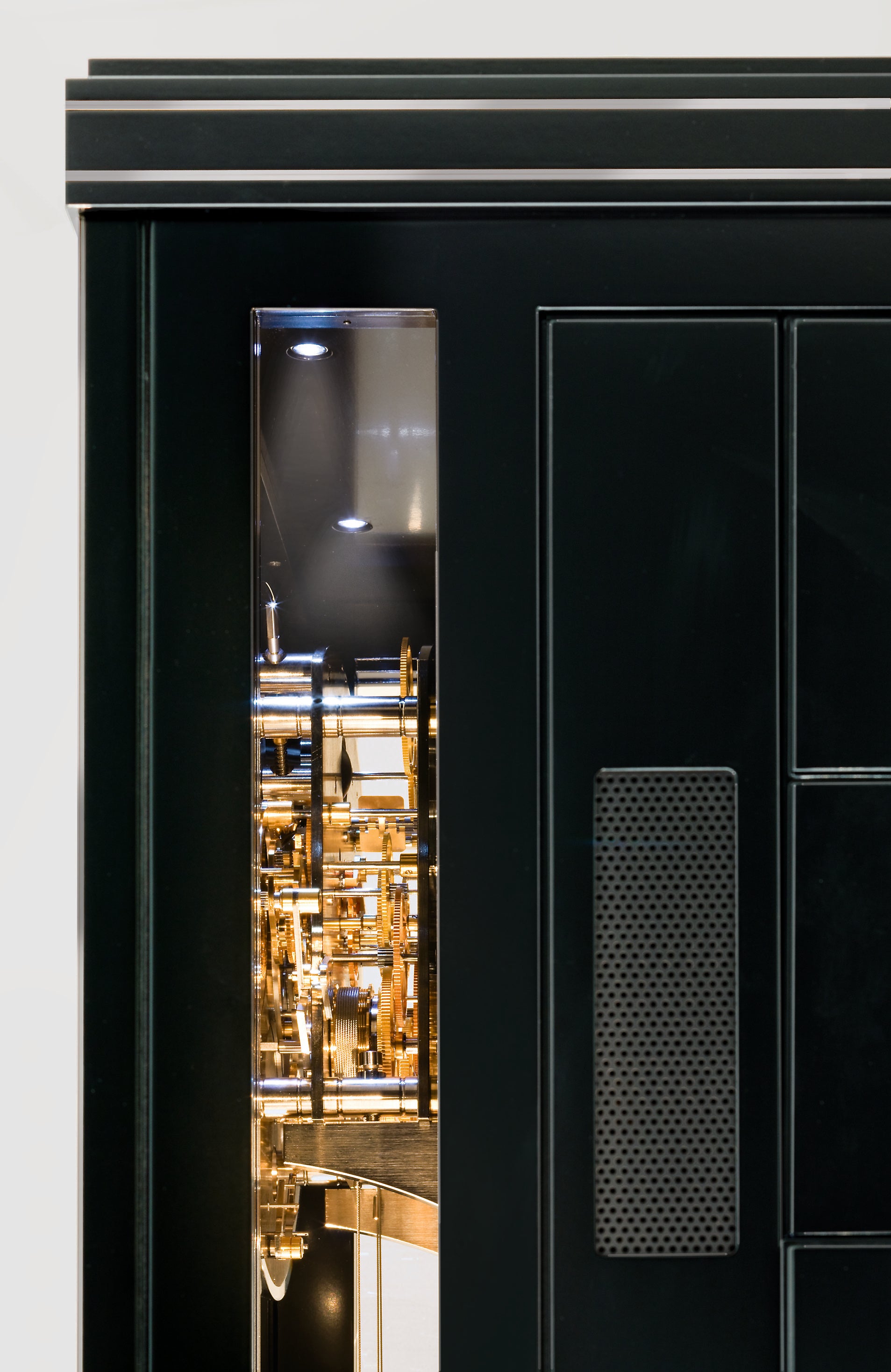 Treasures are kept safe and hidden inside a fascinating and impressive precision pendulum clock